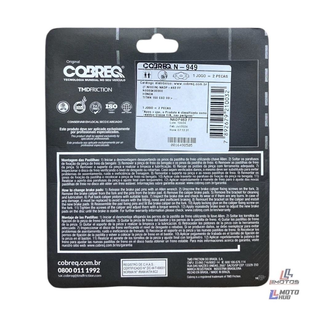 As pastilhas de freio COBREQ oferecem alto desempenho em frenagens, combinando durabilidade, resistência ao desgaste e excelente poder de frenagem em qualquer condição de uso. Desenvolvidas com tecnologia de ponta e rigorosos padrões de qualidade, garantem segurança, conforto e eficiência tanto para uso urbano quanto em viagens. São a escolha ideal para quem busca o equilíbrio entre custo-benefício e qualidade original.